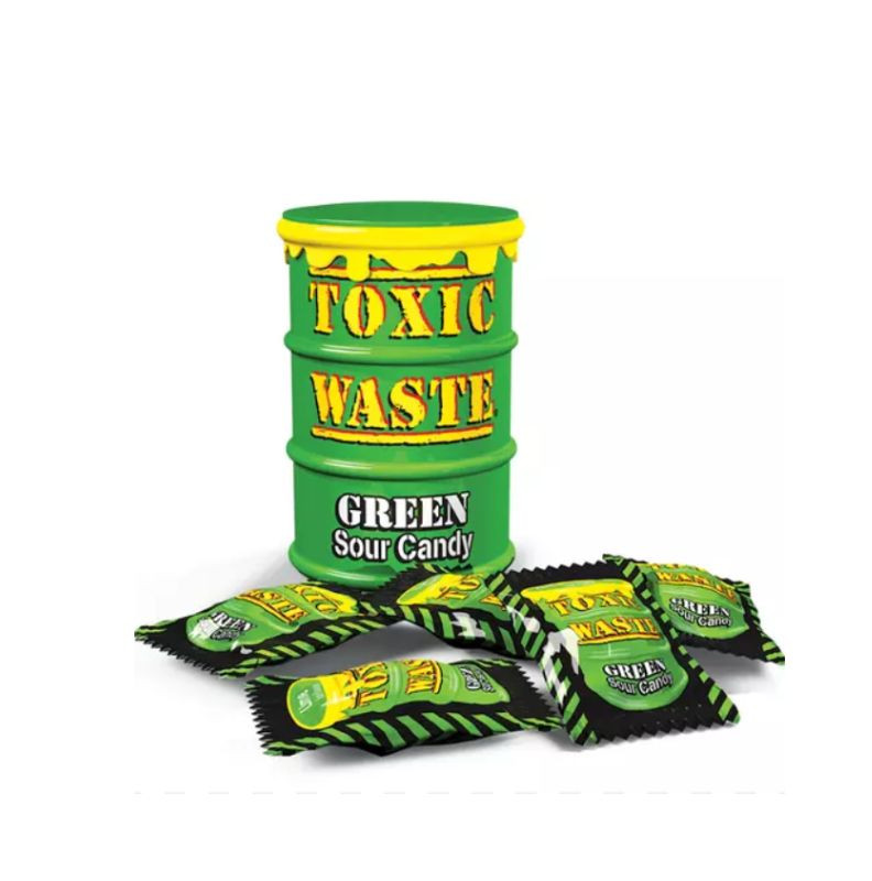 Tambur de bomboane acrișoare verzi Toxic Waste - bomboane extra acrișoare 42g verzi
